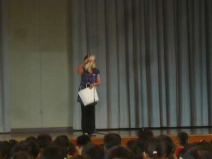 校長先生の代わりに、副校長が、子供たちと、朝の挨拶をします。