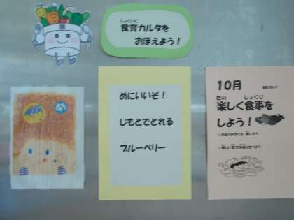 さつまいものおいしい時がやってきました。学校のさつまいもはいつ収穫をむかえるのかちょっと楽しみです。さつまいもは、毎年同じ畑で作ることのできる野菜です。スィートポテトは、さつまいもの皮をむいて蒸かし、熱いうちにつぶしながらバターや牛乳、生クリームをいれて焼きました。たっぷりの量なので、スパゲティの量は少なめになっています。今週の食育カルタは、「め」です。