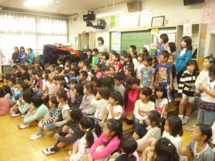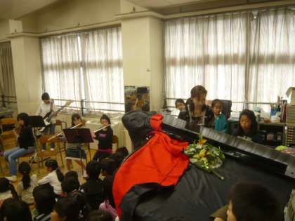 音楽クラブの子供たちが、それぞれの楽器を構えます。