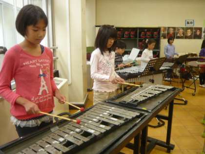 指揮棒の動きを見ながら、子供たちは、演奏を進めます。