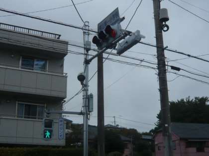 正門の前には、新しい信号機が設置されています。