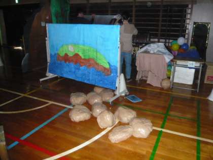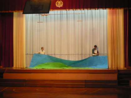 舞台の練習が終わると、次の学年のために片付けを始めます。