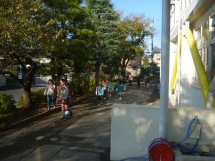 子供たちと一緒に、学校に向かいます。