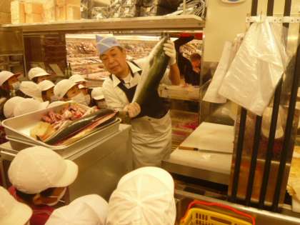 店長「次は、お魚売り場の裏側を見学します。」