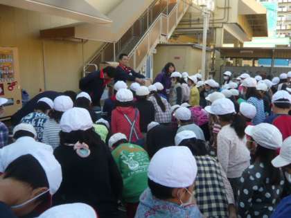 子供たちは、お二人の話を、楽しそうに聞いています。