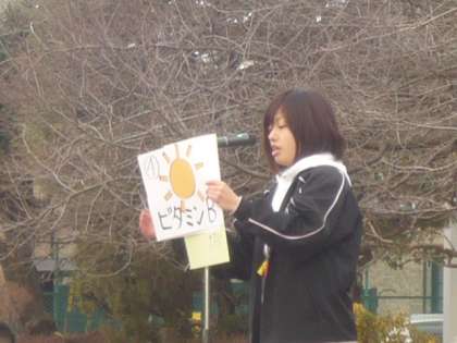 先生「太陽の光に当たると、ビタミンBが体の中に作られます。」