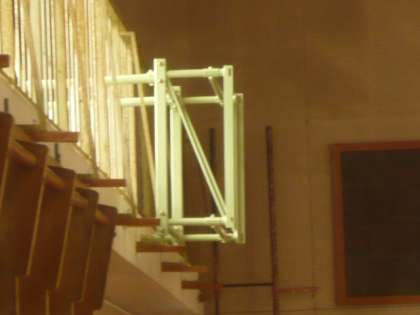 バスケットゴールを設置するための鉄の棒が、しっかり取り付けられます。