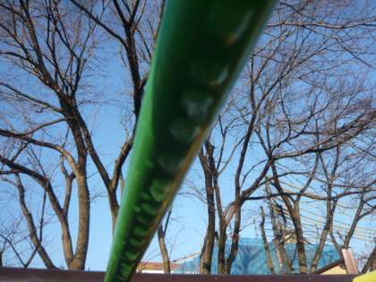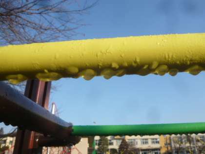 しずくのように見えたものは、水滴が凍っていたものでした。