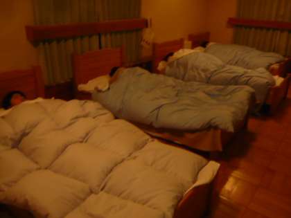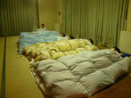 自分たちで布団やシーツを敷きます。