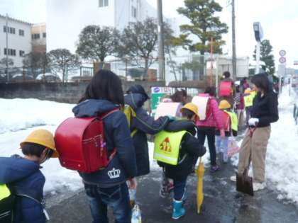 子供たちが登校します。