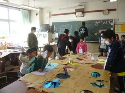 穴の中から、6年生が顔を出します。