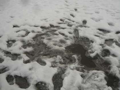 雪の間には、氷が張っています。