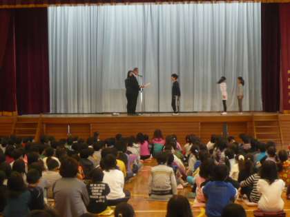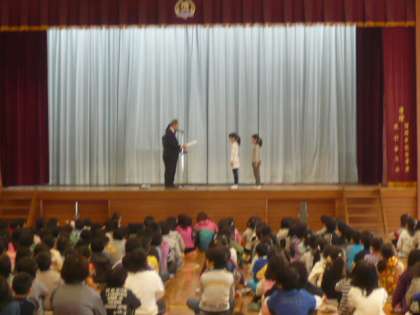 名前を呼ばれた児童が、舞台の上に立ちます。