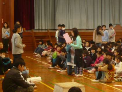 体育館に、子供たちの拍手が響きます。