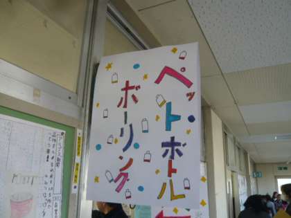教室の端から、ペットボトルがのった箱が移動してきます。