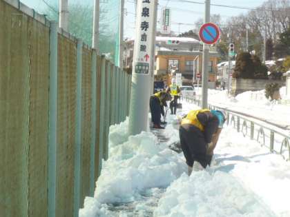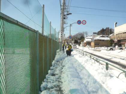 八王子市から派遣された業者の方々が、雪かきをしてくださっています。