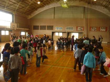 1年「今日は、私たちが、横山第一小学校を案内したいと思います。」