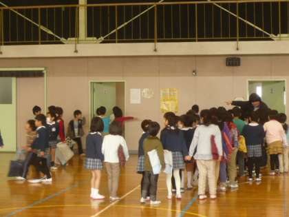1組の子供たちから順番に教室に向かいます。