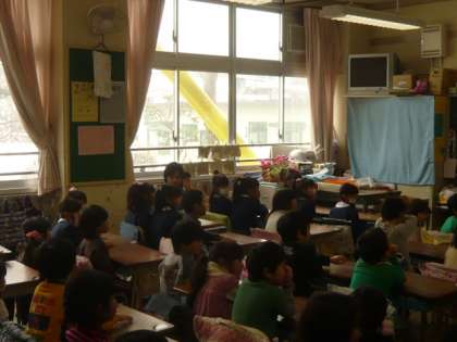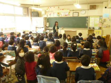 先生「ここが1年生の教室です。」