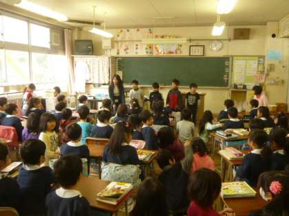 先生「1年生のみんなは、机の中のお道具箱を見せてあげましょう!」