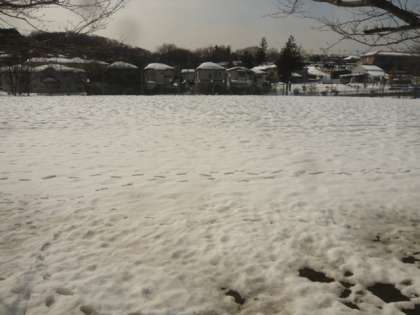 歩道は、所々、まだ凍っています。