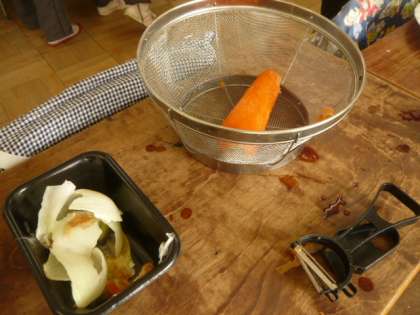 大皿には、子供たちが切った食材が山盛りになっています。
