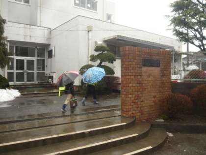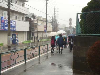 子供たちは、学校の前の歩道を整列しながら登校してきます。