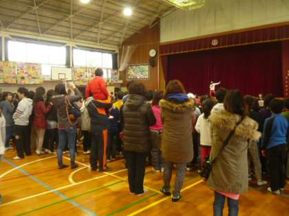 ダンスクラブの子供たちの動きに合わせて、手拍子が起こります。