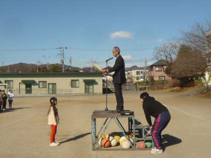 朝礼台の二人は、ちょっと恥ずかしそうです。