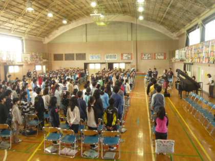 5年生と6年生の子供たちの歌声が、体育館に響きます。