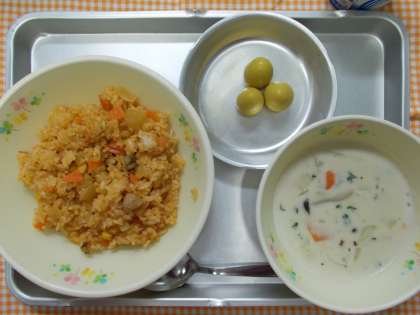 ♪チキンライス チャウダー うずらたまごのカレーに ヨーグルト♪