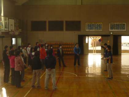 講師「今日の研修の最後は、フリスビーを体験してらいます。」