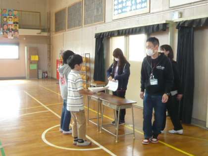 卒業証書を受け取った卒業生は、体育館の後ろへ進みます。