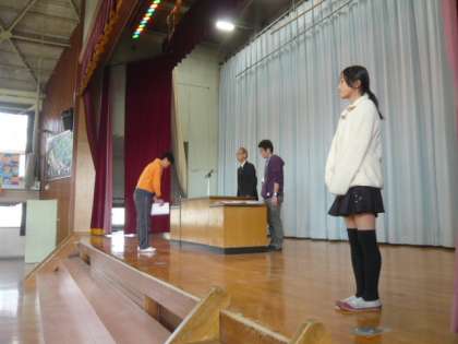壇上で、校長先生から卒業証書をいただきます。