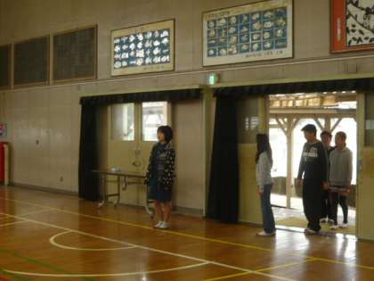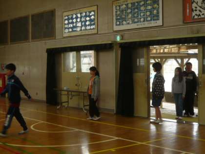 体育館の後ろのドアから、卒業生が入場します。
