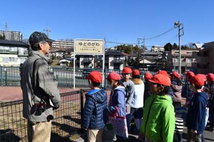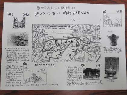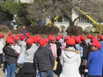 2月7日(火)3年生は、毎年教えていただいている栗原戦三先生にお世話いただいて、地域にある古い道を歩いて、横一小の地域めぐりをしました。栗原先生の手作りのワークシートを手がかりに、湯殿川沿いを調べました。
