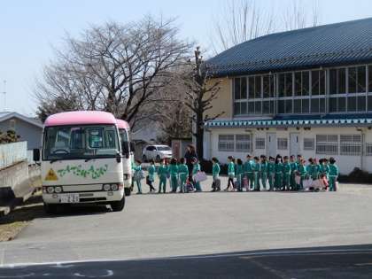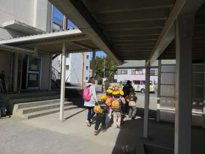2月8日(水)1年生との交流会を終えた年長組のお友だちは、体育館で荷物を背負って帰る身支度も上手にできていました。友だちがトイレを済ませている間も、3年生の体育の授業の様子も見学していました。そして、少し離れたたてまち幼稚園のお友だちは3台の園バスに乗って帰っていきました。また、近くの八王子ひまわり保育園のお友だちは、上手に並んで歩いて帰っていきました。どちらの園のお友だちも、交流会が楽しかったようで、いっぱい「さようなら」と手を振ってくれていました。