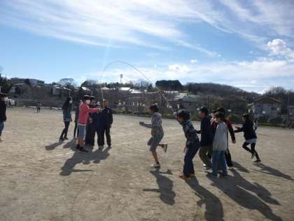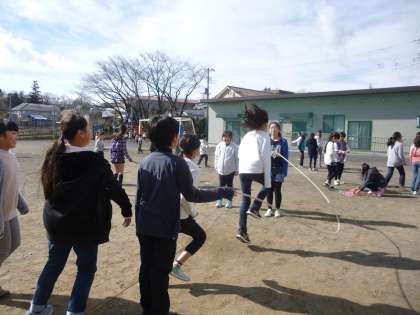今日から長縄跳びの練習が始まりました。休み時間になると、長縄を持ってぱっと校庭に飛び出し、8の字跳びの練習を始めます。早く準備ができた人たちが自主的に練習するグループ、先生たちも一緒になって練習するグループ・・・どの学級もクラスの目標回数を決め、練習に励んでいます。来週の16日の縄跳び集会まで、練習を続けます。みんな目標回数目指して頑張っています。
