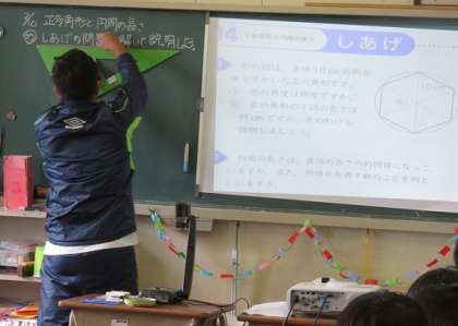 2月10日(金)5年生の算数の習熟度別の学習では、どのグループも授業の最初に『一分間計算』に取り組んでいます。今日は、わり算の50問のプリントに、子どもたちは取り組みました。50問を22秒で解く児童も見られました。そして、今日の学習課題は、「正多角形と円周の長さ」からしあげの問題で、自分の考えを相手に分かりやすく、正しく説明することです。