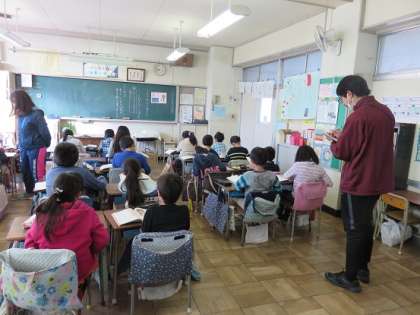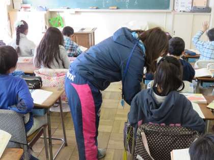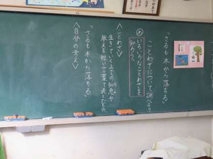 2月14日(火)一人ひとりが、これまでの言語経験などもとに、ことわざの意味を自分で考え出します。そして、机の間を見回りながら、子どもたちが発想しやすいように、個々に支援をしていました。