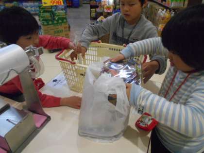 すみれ学級では3学期のお楽しみ会がありました。最後のお楽しみ会なので、みんなで楽しめる内容にしようと準備を進めてきました。まずは教室での遊びをします。司会をはじめ、準備やルール説明など自分たちの力でがんばりました。その後は、買い物係と準備係に分かれて会食の準備をしました。買い物係の人は、みんなの分のお弁当を買いに、スーパーマーケットへ。会場係の人たちは机の準備など食事ができる用意をしました