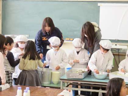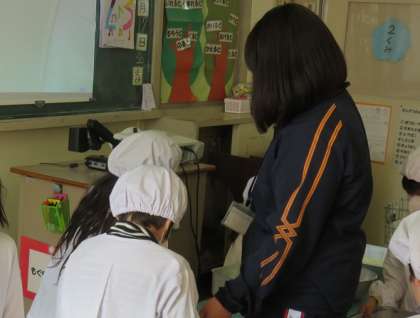 2月17日(金)体育の授業場面だけでなく、教室での学習の場面、そして、給食の準備の際も、重目の食管を配膳台に運ぶことなどの安全見守りや手伝いもしています。配膳をする子どもたちが自分たちで上手に配膳ができるように声かけもしていました。