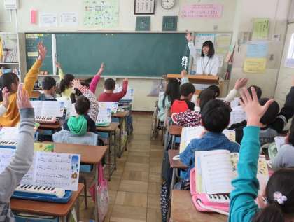 2月20日(月)2年生の一年間で、鍵盤ハーミニカを何回も練習したので、みんな上手になっていました。そして、2年生の学年もあと少しになったので、鍵盤ハーモニカのまとめの勉強をしました。今まで習った曲を次々に演奏できて、頑張った姿がみなぎっていました。