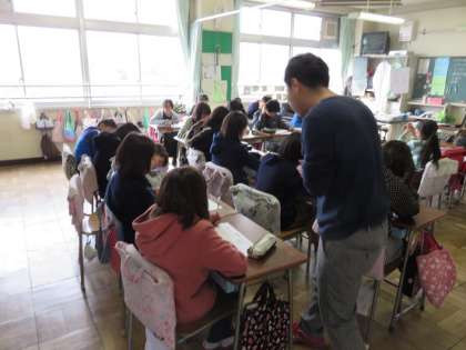 3月6日(月)子どもたち一人ひとりの生活経験から導き出された考えを、机の間を回りながら支援していました。子どもならではの気づきや着眼点、そして、発想を大切にしながら、ペアーやグループでの高め合い、そして、学級全体での学び合いの中で、今日の学習のめあての「けがの予防」について、子どもたちの考えを高めさせていました。