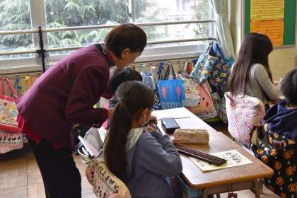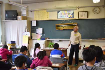 3月7日(火)そろばんの出前授業がありました。3年生の子どもたちは、そろばんの先生から、そろばんの仕組みやコマの動かし方を教えていただきました。子どもたちのいつもの生活の中では、電卓の仕組みによるいろいろな器具が普及している中、昔ながらのそろばんに、興味をもっていました。また、指を動かして答えを出していくことを、ていねいに教わっていました。