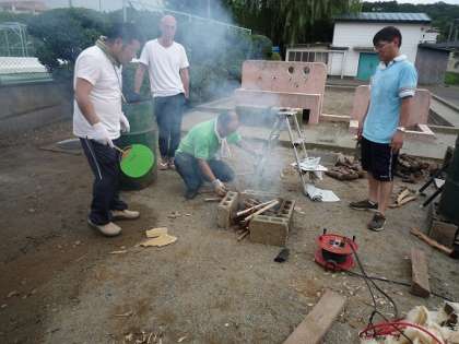写真は、25年度当時のオータムキャンプでの「ドラムカン風呂」の準備をされている時のものです。