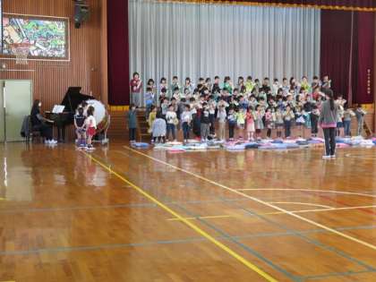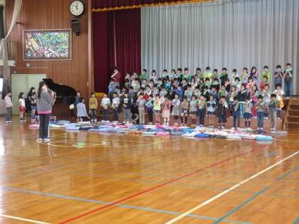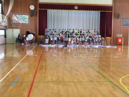2年生は、間近に迫った『一年生を迎える会』に備えて、一年生へのプレゼントの出し物の練習を体育館でしました。一年生の時に教えてもらった合奏した曲を、新しい担任の先生と一緒に、上手にできるように仕上げていました。