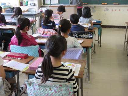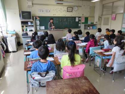 背筋を伸ばして、相手の方に目も気持ちも向けて、しっかり聴くことで、学習が深まっていきます。2年生の教室では、国語の漢字の学習とともに、話の聞き方や発表の仕方も勉強していました。