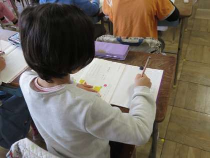 学習の内容の習得とともに、背筋を伸ばしてノート書きをすることなど、子どもたちは声をかけられていました。