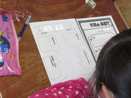5年生の教室でも、一学期のめあてを考えさせ、文字に表すことで、しっかりと意識させる学習をしていました。また、自分の好きなことなど考える中で、自分のよさや強み、自分がこれから克服していくことなどに思いを巡らさせていました。自分自身をしっかり把握することから、自分を高めるヒントを考えださせていきます。